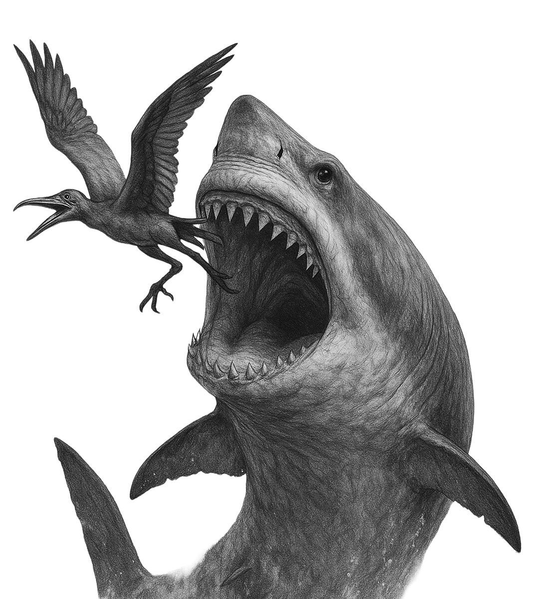 Los feroces megalodones en “Ecos de la prehistoria”.